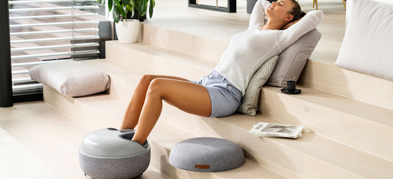 Компресійний масаж використовує повітряний тиск для впливу на м'язи для розслаблення та зняття напруги в ногах. Шість головок імітують масаж шиацу – розминання пальцями чи долонями. Для глибокого та інтенсивного впливу та стимуляції рефлекторних зон стоп
