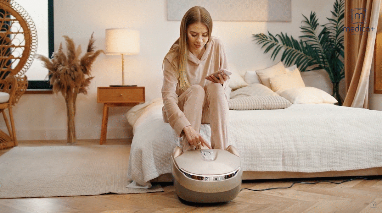 З помилковий роликовий трисекційний механізм дозволяє обробляти пальці та суглоби, а повітряні подушки, призначені для стискання підйому стопи та її бічних поверхонь. Доповненням до цих дій для посилення ефективності масажу може бути вбудований інфрачервоний прогрів. Масажер для ніг MEDICA + FootMass 5.0 надасть чудову можливість не тільки відчути відчуття легкості в ногах, але позбутися набряклості та больових спазмів.