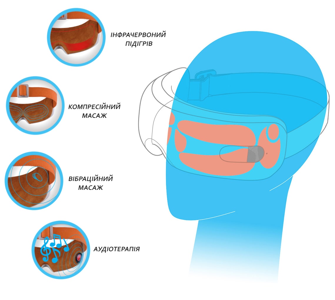 - Під час масажу ви можете доповнити сеанс звуковим супроводом і насолодитися улюбленою музикою. Для цього масажні окуляри Zoryana оснащені функцією Bluetooth і вбудованими динаміками.