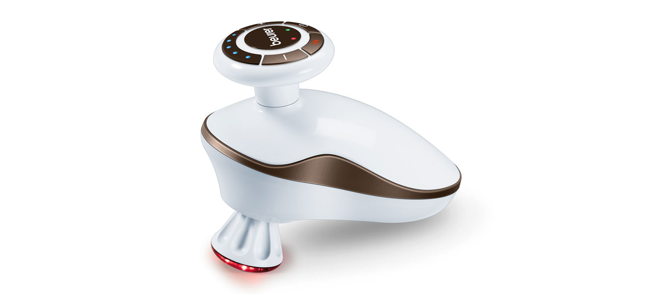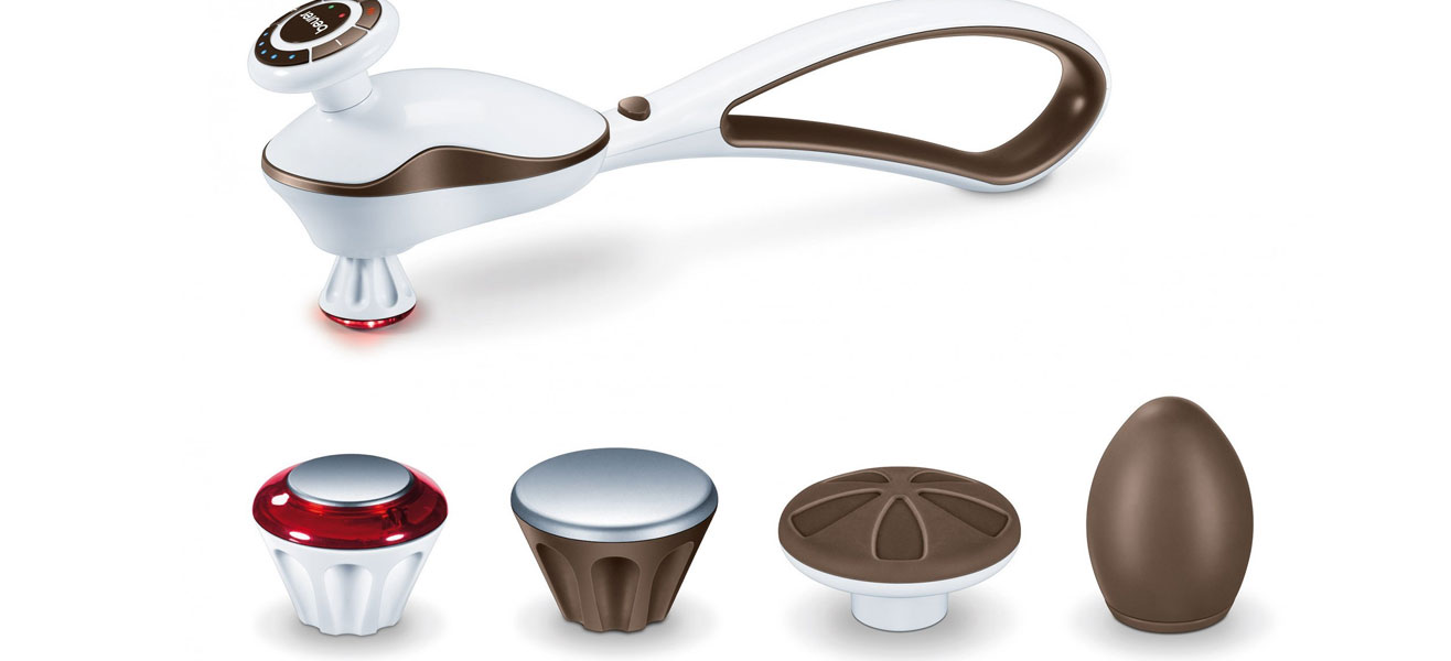 Чотири насадки: прогріваюча (для поліпшення кровообігу), охолодна (для швидкої регенерації тканин), м'яка (для ніжного масажу) та точкова (для глибокого впливу). Плавне п'ятиступінчасте регулювання швидкості та два режими - масаж, що поплескує, і масаж з тепловим впливом