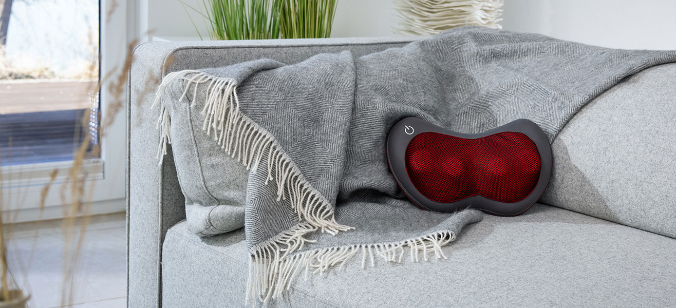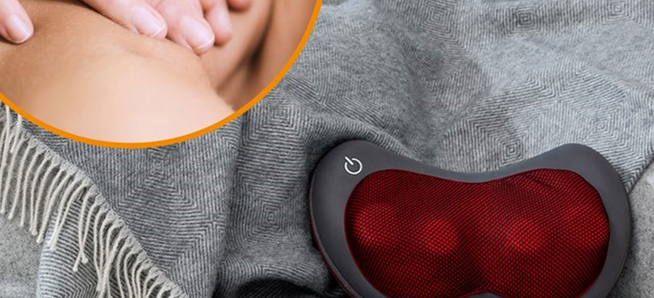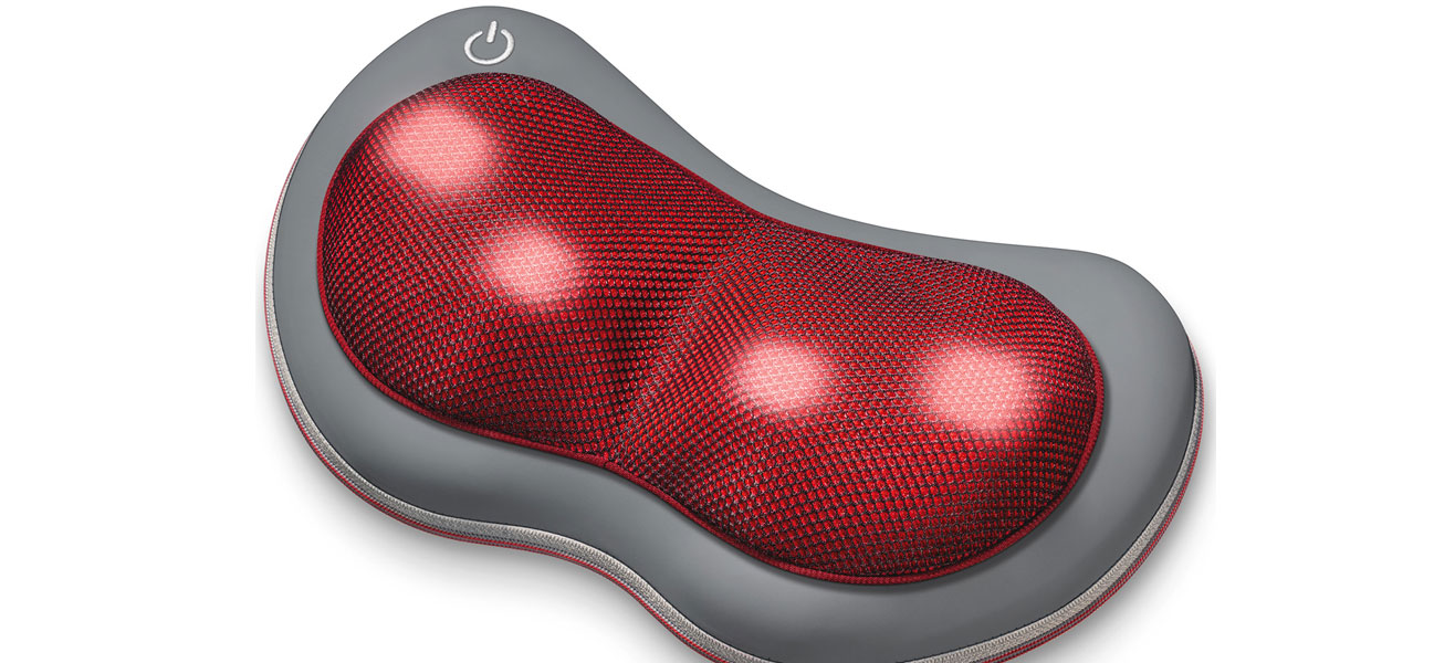 У виріб є 4 головки, що обертаються з підсвічуванням і обігрівом. Масажні елементи обертаються попарно за годинниковою стрілкою або у зворотному напрямку, імітуючи рухи натискання та розминання, схожі з технікою масажу шиацу. Подушка придатна як для самомасажу або проведення сеансів на інших людях. За допомогою масажної подушки можна розім'яти, розслабити, зняти напругу з м'язів шиї, спини (верхній відділ, середній, область попереку), а також сідниць, плечі, стегон та литкових м'язів.